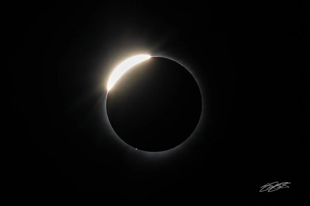 On April 8th, 2024 at approximately 3:30pm Maine experienced a monumental total solar eclipse that brought a unique darkness over the land lasting nearly three and a half minutes. This rare celestial event when the moon perfectly intersects paths with the sun casting a shadow upon the earth was experienced by hundreds of thousands. Where I was in the Greenville and Moosehead Lake Region, it is estimated that over 35,000 excited people found their special spot to view this once-in-a-lifetime alignment in the sky. Situated just next to the picturesque Blair Hill Inn, I found myself standing at a highlands elevation of about 1,500ft with a Southwest vantage looking clear into Northern New Hampshire, Canada, and Northern Vermont. Without a cloud in the sky across the entire state of Maine, eclipse chasers came from all over the world in hopes of experiencing totality. From 2:20pm to 4:40pm I had the honor and gift of photographing the entire duration of this incredible total solar eclipse. This was a self-assigned photographic project I had been planning for months, however no part of my planning prepared me for what it was like to be there and experience it first-hand. To feel the temperature drop as the shadow of the moon passed by, to see Venus appear in the sky, to see all along the distant horizon warm colors of a tone I had never witnessed before, and to look into the sky at the corona radiating from the blocked sun; it was so surreal and still leaves me absolutely speechless. How lucky are we for the opportunity to be a part of something so beautiful, so powerful, so perfectly imperfect.